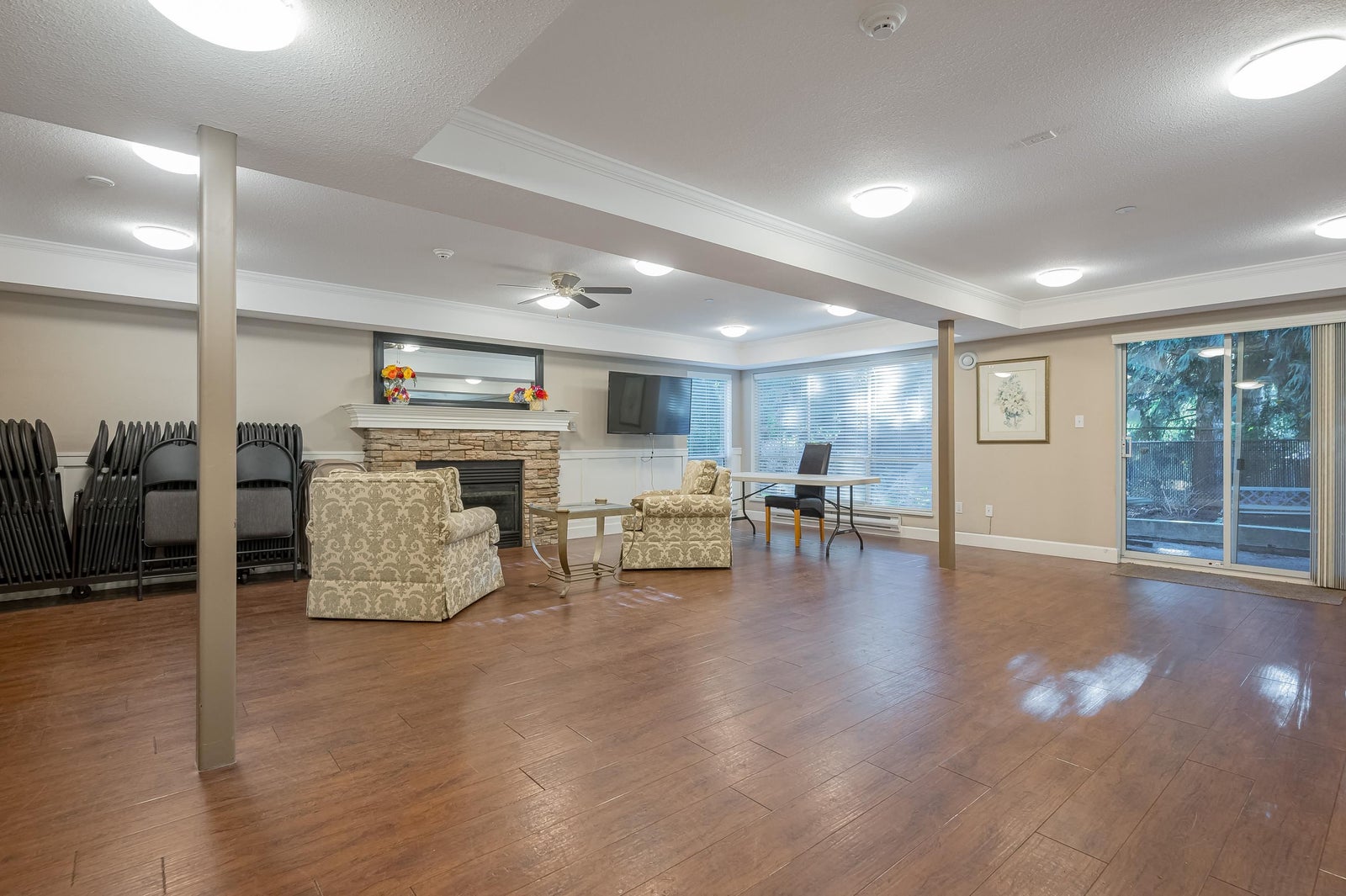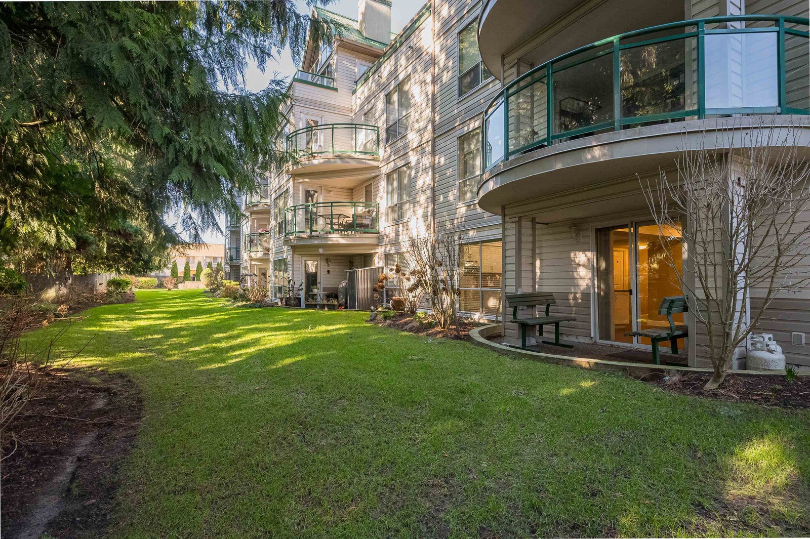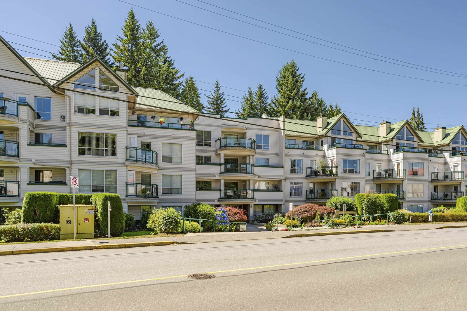 TOP FLOOR, VAULTED CEILING at Emerald Springs! Ideally located at the back of the complex with serene views of the garden and trees. This exceptional 2-BDRM, 2-BATH home is bathed in natural light and one of the best in the building, offering 967 sq ft of quiet and peaceful living. The contemporary kitchen offers excellent functionality & opens to the living room with gas F/P. Enjoy outdoor living with TWO private sundecks—perfect for soaking up daytime sun or stargazing at night. 1 Locker, 1 Parking (can rent add. parking from strata). Strata fees include gas & hot water. Amenities: rec room w kitchen, exercise room, workshop, & bike storage. Pet friendly. Located on the bus route, close to all levels of schools. Easy walking distance to nature at Mill Lake Park, shops, services & dining.