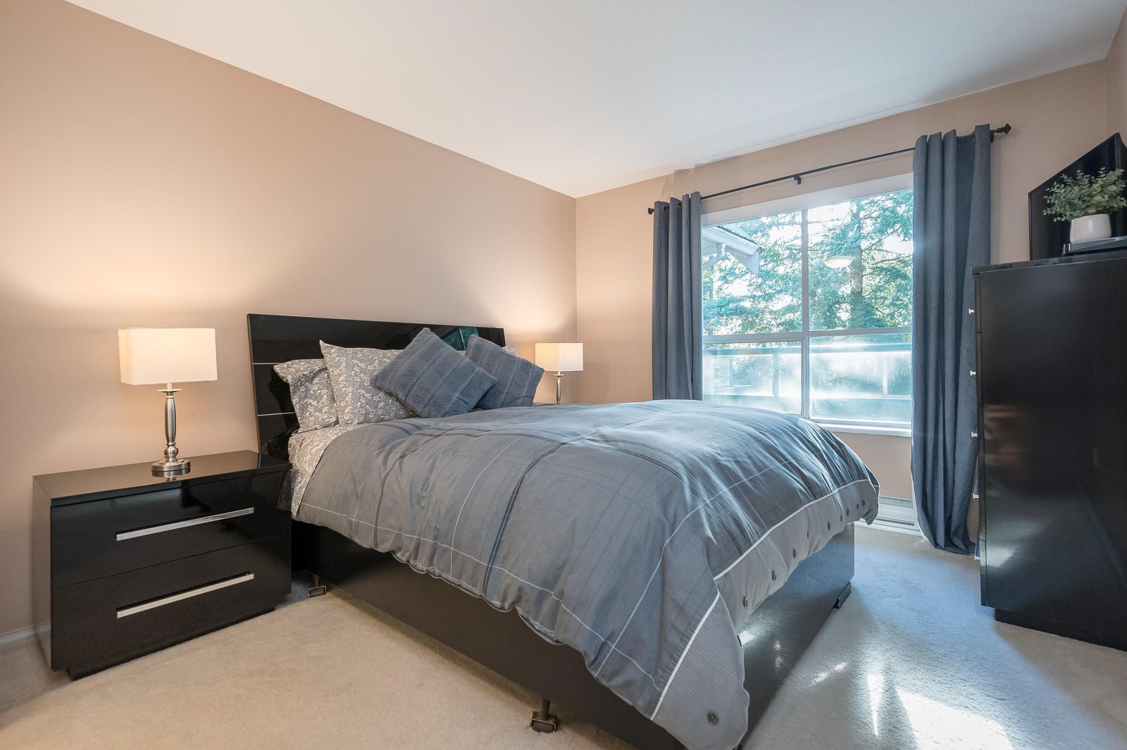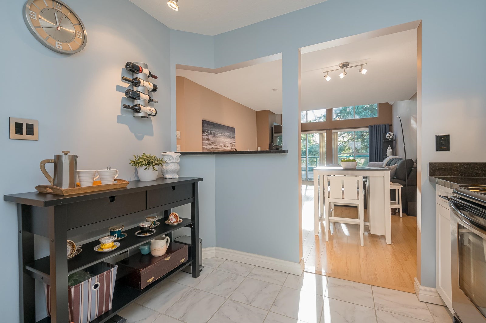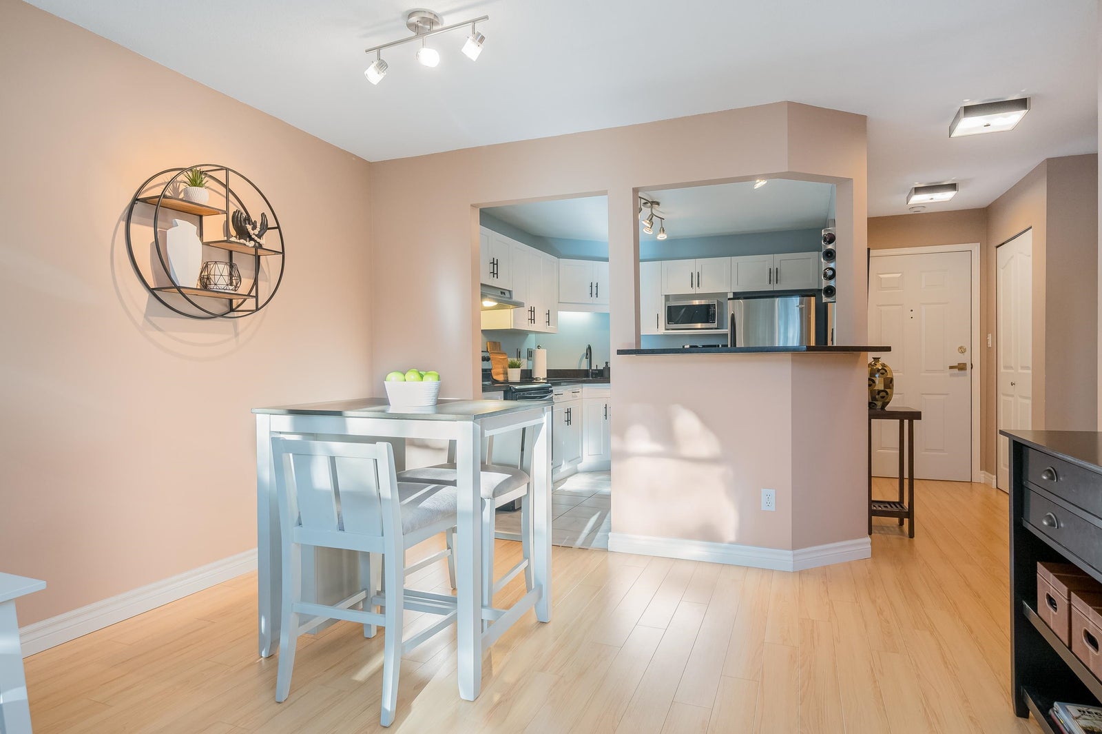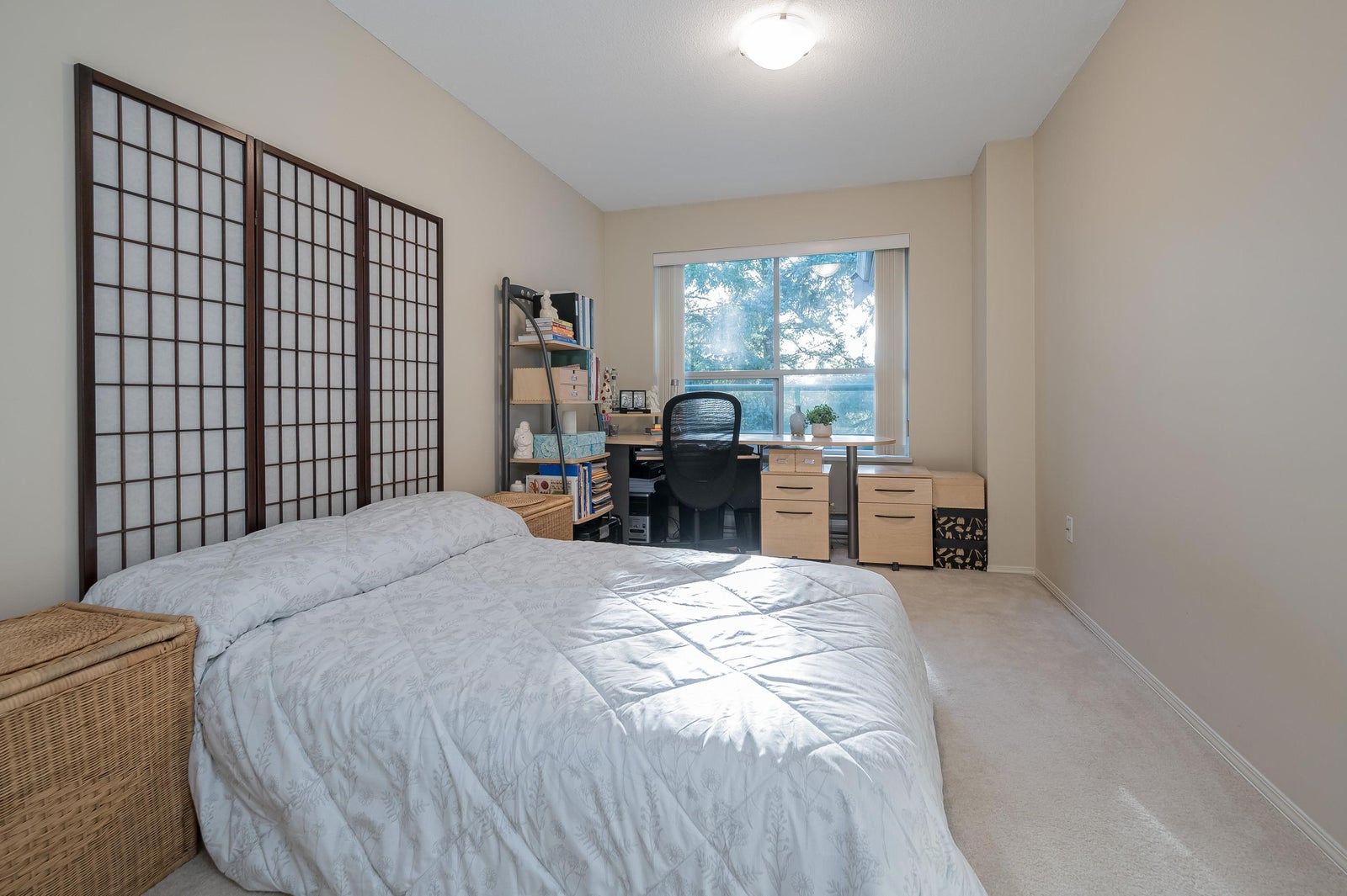 TOP FLOOR, VAULTED CEILING at Emerald Springs! Ideally located at the back of the complex with serene views of the garden and trees. This exceptional 2-BDRM, 2-BATH home is bathed in natural light and one of the best in the building, offering 967 sq ft of quiet and peaceful living. The contemporary kitchen offers excellent functionality & opens to the living room with gas F/P. Enjoy outdoor living with TWO private sundecks—perfect for soaking up daytime sun or stargazing at night. 1 Locker, 1 Parking (can rent add. parking from strata). Strata fees include gas & hot water. Amenities: rec room w kitchen, exercise room, workshop, & bike storage. Pet friendly. Located on the bus route, close to all levels of schools. Easy walking distance to nature at Mill Lake Park, shops, services & dining.